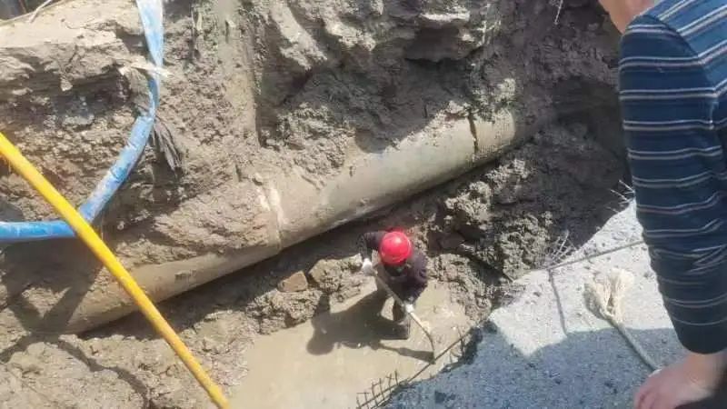 經勘查,發現滲漏點在DN630供水管道下方,滲漏點附近頂管工程施工管線與供水管道有交叉,初步診斷為供水管道多處被損壞。該管道為通往海景花園、海潤園、石化園區、一期碼頭的主供水管道,如不能及時修理將影響沿線1000多戶居民和數十家企業的正常生產生活。