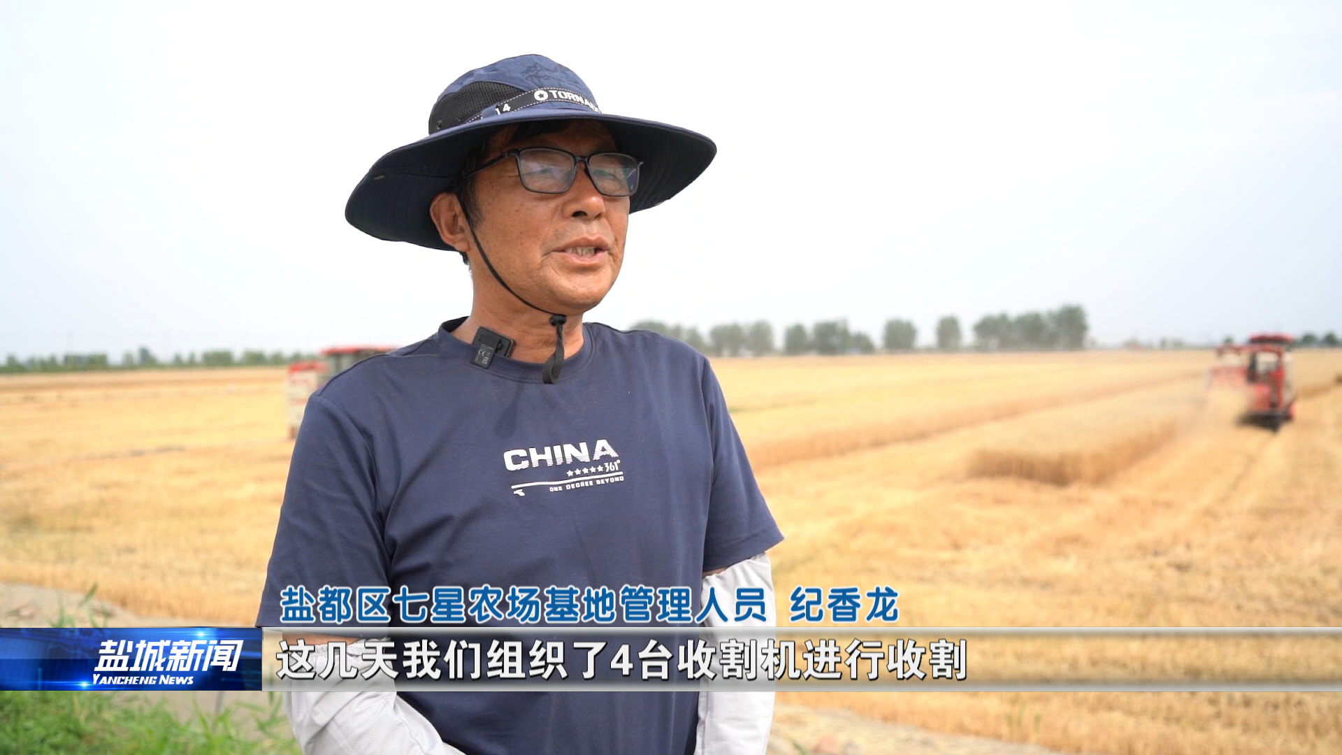 風吹麥浪,夏收啟幕。據農情調度,今年全市夏糧種植面積675.6萬畝,其中小麥640.9萬畝、大麥21.2萬畝、二豆13.5萬畝,另有油菜種植面積61.6萬畝,夏收工作時間緊、任務重。在鹽都區七星農場基地的麥田地里,四臺大型收割機械在麥田里來回穿梭,田野里飽滿的麥穗隨風搖擺,處處洋溢著豐收的景象。農場管理人員告訴記者,今年農場試驗田內種植小麥1300畝,主要種植的品種為鹽城市鹽都區農科所選育的鹽麥5號,好品種、好管理加上好天氣,今年又是一個豐產、豐收年。