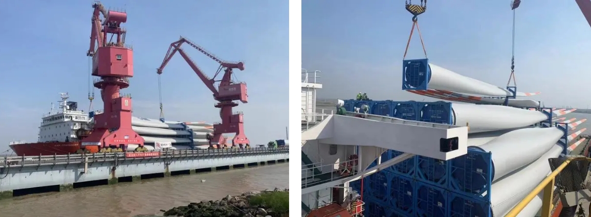鞏固服務載體,需求對接“零距離”。為確保此次外貿葉片保質保量、安全順利發運,射陽港區積極配合客戶單位做好全流程規劃。針對作業流程繁瑣、工藝復雜、雙機配合難度高等實際問題,超前規劃對接船舶配載,確認風葉裝船順序,制定專船貨位圖,專人跟蹤裝貨清單確認每套設備集港狀態、裝船順序,不斷優化裝載方案,實現溝通“無障礙”保證作業安全。