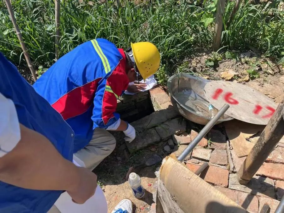 (表井內有水,為清楚抄表,抄表員正在抽水中)