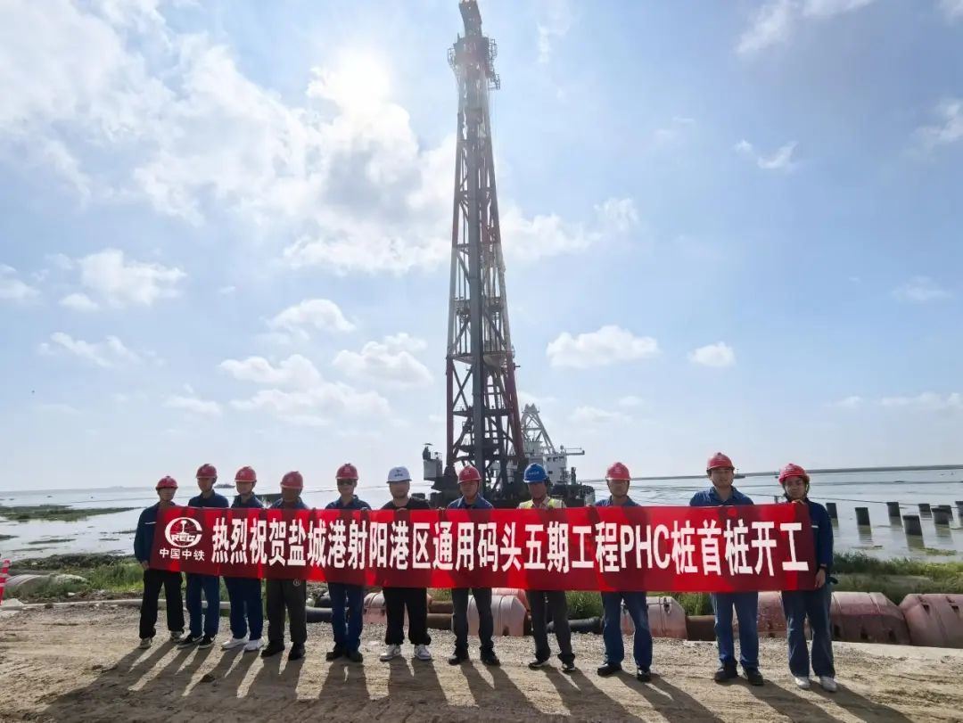 首樁告捷!鹽城港射陽港區通用碼頭五期工程首根PHC管樁精準入海