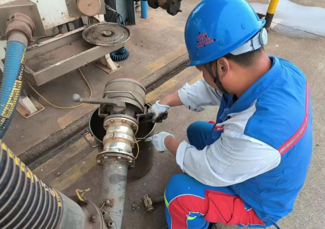 當班人員陳紀云立即向值班領導匯報了情況,一場與時間賽跑的檢修行動隨之展開。值班領導迅速決策,通知組長周漢華緊急召集全體機電班組成員。時間緊迫,周漢華沒有絲毫猶豫,立即通過電話通知每位成員,在1小時內,港儲石化的微光創新班組已經集結完畢。他們迅速分工合作,每一個環節都緊密銜接,每一個動作都準確無誤。在這場與時間的較量中,再次展現了他們過硬的專業素養和高效的團隊協作能力。