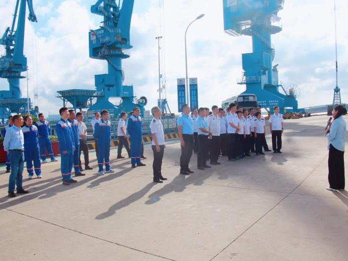 活動當天,連云港海事局一行人員參觀響水港區(qū)中心碼頭,詳細了解港區(qū)的碼頭建設(shè)、生產(chǎn)經(jīng)營等情況。海事局對港區(qū)在黨建工作和生產(chǎn)經(jīng)營方面取得的成績表示肯定。雙方就黨建工作情況特別是黨建與業(yè)務(wù)深度融合的形式、黨建品牌建設(shè)情況等進行充分交流,同時在政策宣傳、船舶審批、信息共享等方面如何更好配合進行了深入探討。交流學習過程中,雙方表示,要充分發(fā)揮各自黨建優(yōu)勢,聚焦業(yè)務(wù)特點,增強支部黨員情感認同,以黨建促進業(yè)務(wù)工作融合,探索支部合作新模式,相互學習、取長補短,實現(xiàn)“黨建共聯(lián)、資源共享、互助共建、和諧共促”的良好局面。