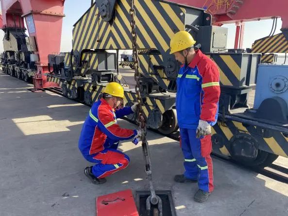 “磨刀不誤砍柴工”,射陽港區(qū)結(jié)合現(xiàn)場(chǎng)實(shí)際情況,制定班組檢查方案,重點(diǎn)做好防寒、防凍、防風(fēng)、防火等季節(jié)性工作的準(zhǔn)備。生產(chǎn)保障組將設(shè)備管理關(guān)口前移,加大冬季設(shè)備整修力度,無死角地開展設(shè)備換季大檢查,對(duì)設(shè)備逐件、逐項(xiàng)進(jìn)行防寒整治,對(duì)發(fā)現(xiàn)的問題做到及時(shí)整治、協(xié)調(diào)處理、實(shí)名銷號(hào),同時(shí)對(duì)設(shè)備密封性能進(jìn)行“地毯式”排查,建立相關(guān)臺(tái)賬。按照大修標(biāo)準(zhǔn)和周期管控要求,對(duì)門機(jī)設(shè)備四大主要機(jī)構(gòu)及電控部分進(jìn)行檢修,切實(shí)提升設(shè)備可靠性,有效保障連續(xù)生產(chǎn)。