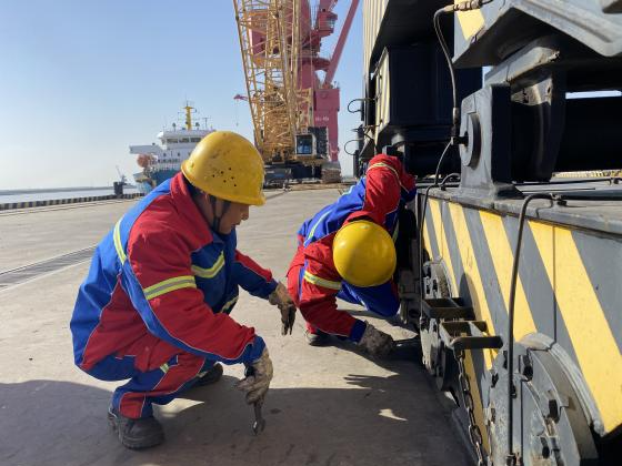 為確保設(shè)備防寒工作得到有效落實(shí),射陽港區(qū)堅(jiān)持問題導(dǎo)向,明確責(zé)任分工,加大檢查監(jiān)督力度,開展安全警示教育及作業(yè)標(biāo)準(zhǔn)方面的專題培訓(xùn),引導(dǎo)干部職工深入識(shí)別和分析各類安全風(fēng)險(xiǎn),堅(jiān)持“邊檢查、邊整改、邊提升”的原則,重點(diǎn)關(guān)注門機(jī)、場(chǎng)地機(jī)械等關(guān)鍵設(shè)備,加強(qiáng)數(shù)據(jù)監(jiān)測(cè)、設(shè)備基礎(chǔ)檢查力度,準(zhǔn)確掌握設(shè)備變化情況,打好設(shè)備防寒“組合拳”。