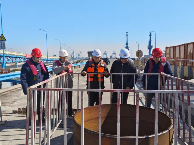 在大豐港區一期引橋搶險加固項目施工現場中