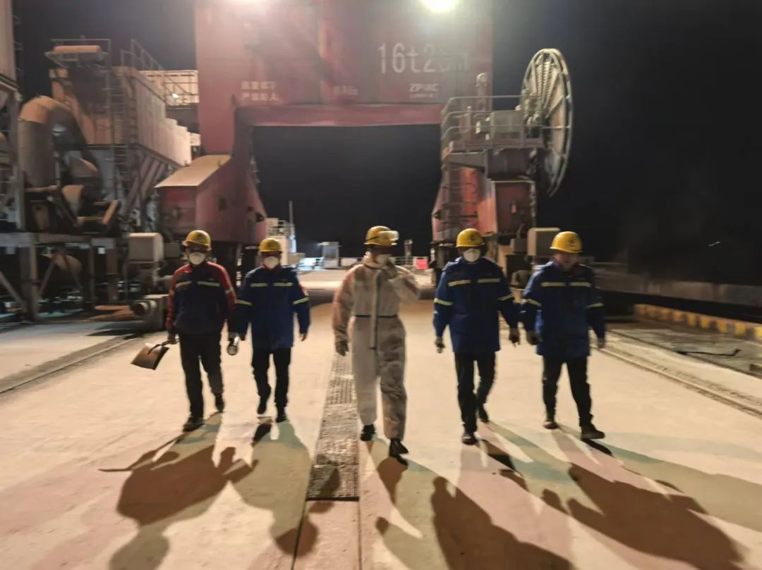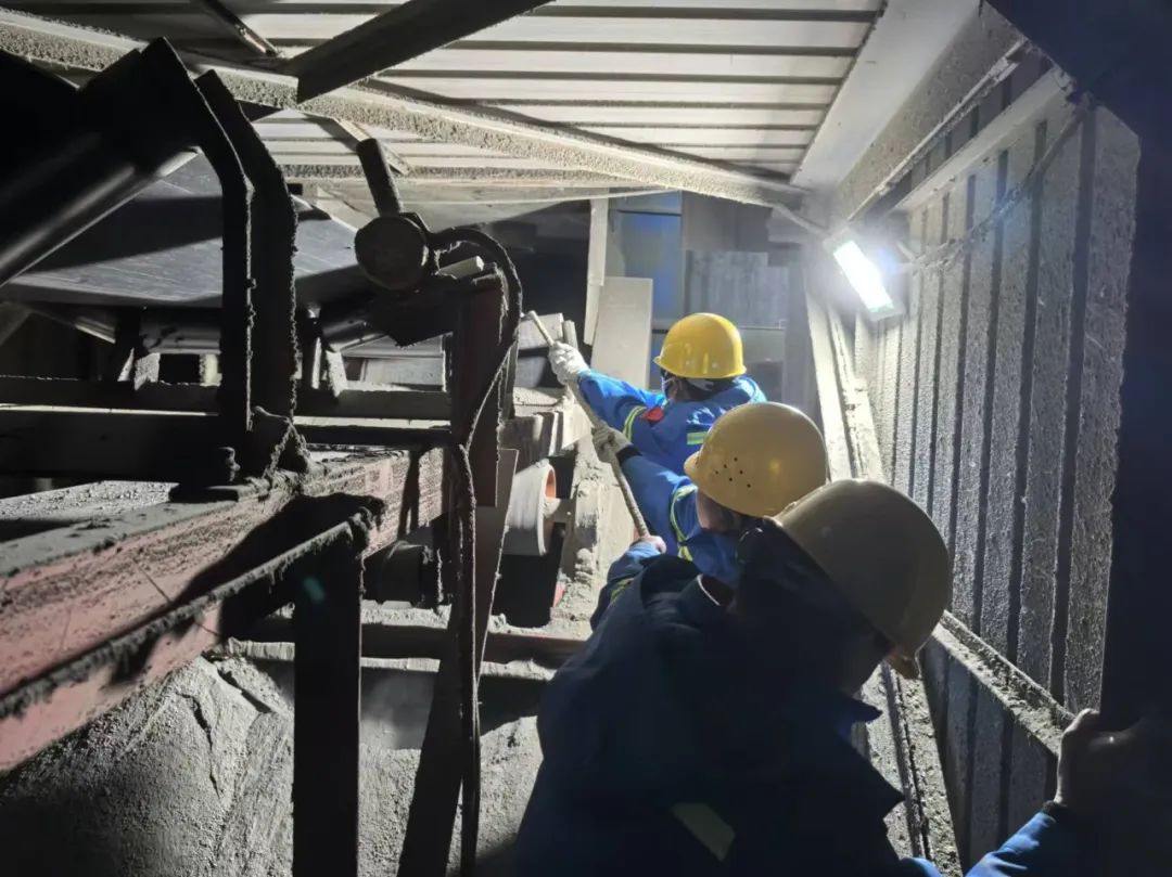 ?面對二次堵料疊加潮位上漲的壓力,現(xiàn)場指揮人員迅速升級應對策略:通過多工種“立體作戰(zhàn)”,維修人員頂著刺骨寒風,用風鎬破碎卡料,人工清掏堵塞物;設備團隊同步調(diào)整皮帶機傾角;安全員全程監(jiān)控作業(yè)環(huán)境,確保搶修零風險。零下的寒風中,維修人員的手凍得通紅,卻無人停下手中的工具;技術(shù)團隊徹夜值守,反復調(diào)試設備運行狀態(tài);安全員舉著探照燈全程監(jiān)護,確保每個環(huán)節(jié)萬無一失。“故障不排除,隊伍不收兵!”凌晨12時30分,隨著皮帶機重新轟鳴,這場持續(xù)近5小時的攻堅戰(zhàn)終告勝利。