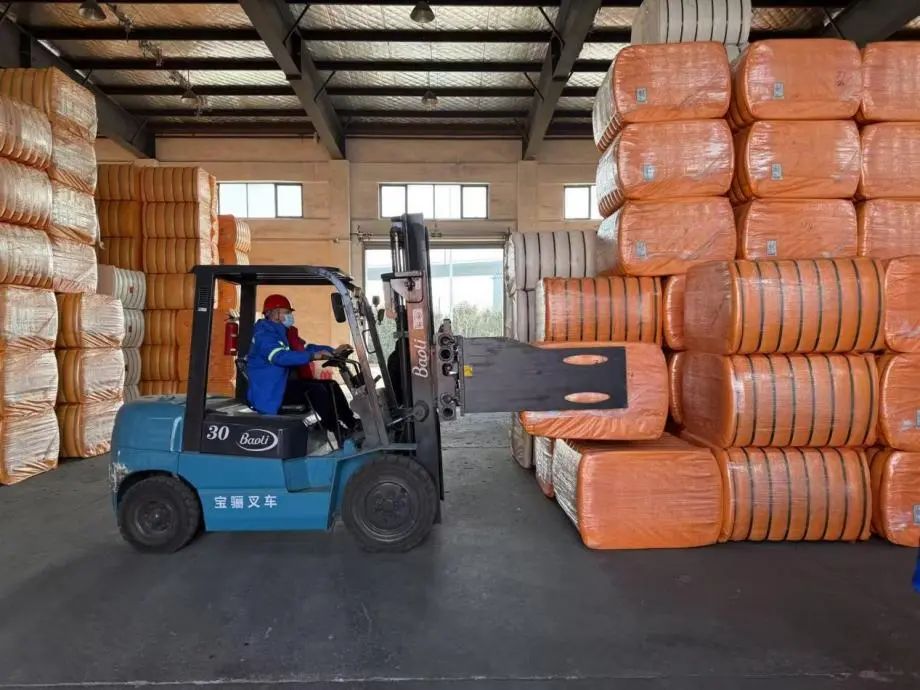 精準(zhǔn)操控叉車(chē)穿梭于橙色貨海之間