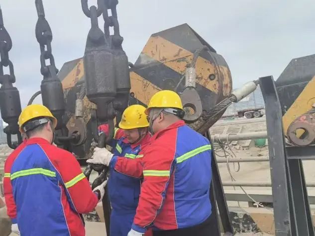 安全,是港口生產(chǎn)永遠(yuǎn)不可逾越的紅線,設(shè)備安全更是重中之重。生產(chǎn)保障組24小時堅守崗位,時刻守護著港口設(shè)備的安全運行。他們依據(jù)門機使用頻率、作業(yè)環(huán)境及磨損數(shù)據(jù)等詳細(xì)信息,“量體裁衣”地為每一臺設(shè)備制定保養(yǎng)方案。為關(guān)鍵部位充分潤滑,確保“鋼鐵巨人”能夠運轉(zhuǎn)流暢;鋼絲繩等重點部件接受“點檢員”細(xì)致入微的檢查,不放過一絲隱患裂痕,為安全生產(chǎn)筑起堅實的“防護墻”。