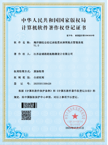 截止目前,勘測公司共計獲得2項實用新型專利證書和12個軟件著作權證書。此次軟件著作權獲批,更標志公司在海洋測繪智能化技術研發領域取得了關鍵突破,進一步鞏固了公司在海洋測繪賽道的技術優勢。