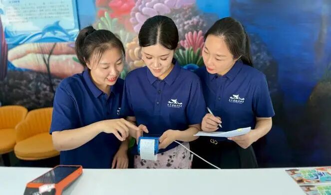 “作為大豐港海洋世界的員工,我們不僅是海洋知識傳播者,更是景區(qū)形象的守護者。”游客中心老員工張梅玲向新員工們強調(diào)服務(wù)初心。她帶領(lǐng)新員工從接聽電話、商品銷售、門票銷售、年卡核銷到游客接待等方面耐心講解每個細節(jié)。“游客的安全和體驗永遠是第一位,我們多一份細心,游客就多一份安心”。老員工不僅傳授技能,更注重傳承“專業(yè)、責(zé)任、創(chuàng)新”工作理念。在老員工的帶動下,新員工積極主動“實操賦能”,真正從“學(xué)習(xí)者”變成“參與者”。