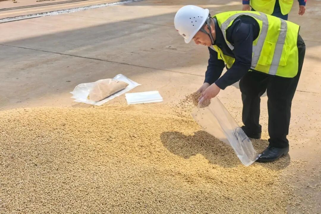 “百日攻堅(jiān)就是跟時(shí)間搶進(jìn)度,每批大豆順利通關(guān),都是往全年目標(biāo)上多添一塊磚?!鼻宄苛c(diǎn)半,天色微亮,值班的吳軍華已端坐電腦前梳理工作。對(duì)接船代檢疫與水尺檢驗(yàn)、溝通碼頭起吊事宜、協(xié)調(diào)聯(lián)檢單位查驗(yàn)、跟進(jìn)取樣送檢流程……他將工作拆解成“任務(wù)清單”,每個(gè)環(huán)節(jié)規(guī)劃得滴水不漏。他深知進(jìn)口大豆通關(guān)涉及部門多、流程雜,常強(qiáng)調(diào)關(guān)鍵時(shí)候哪怕一個(gè)小疏漏,都可能耽誤后續(xù)生產(chǎn)銷售,必須把每一步都踩實(shí)。
