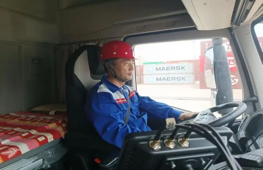 駕駛室內,集卡師傅們手握方向盤,引擎轟鳴中,他們駕駛著龐大的車輛在碼頭岸橋與集裝箱堆場間靈活穿梭,精準停靠、平穩轉運,每一次轉向、每一腳油門都透著熟練與專注,如同港口物流線上不知疲倦的 “擺渡人”。車窗外是節日彩燈與萬家燈火,車廂內是孤獨與堅守。方向盤上的汗水、座椅上的疲憊,都化作前行動力,他們知道,車輪多轉一圈,港口物流就多一分暢通。