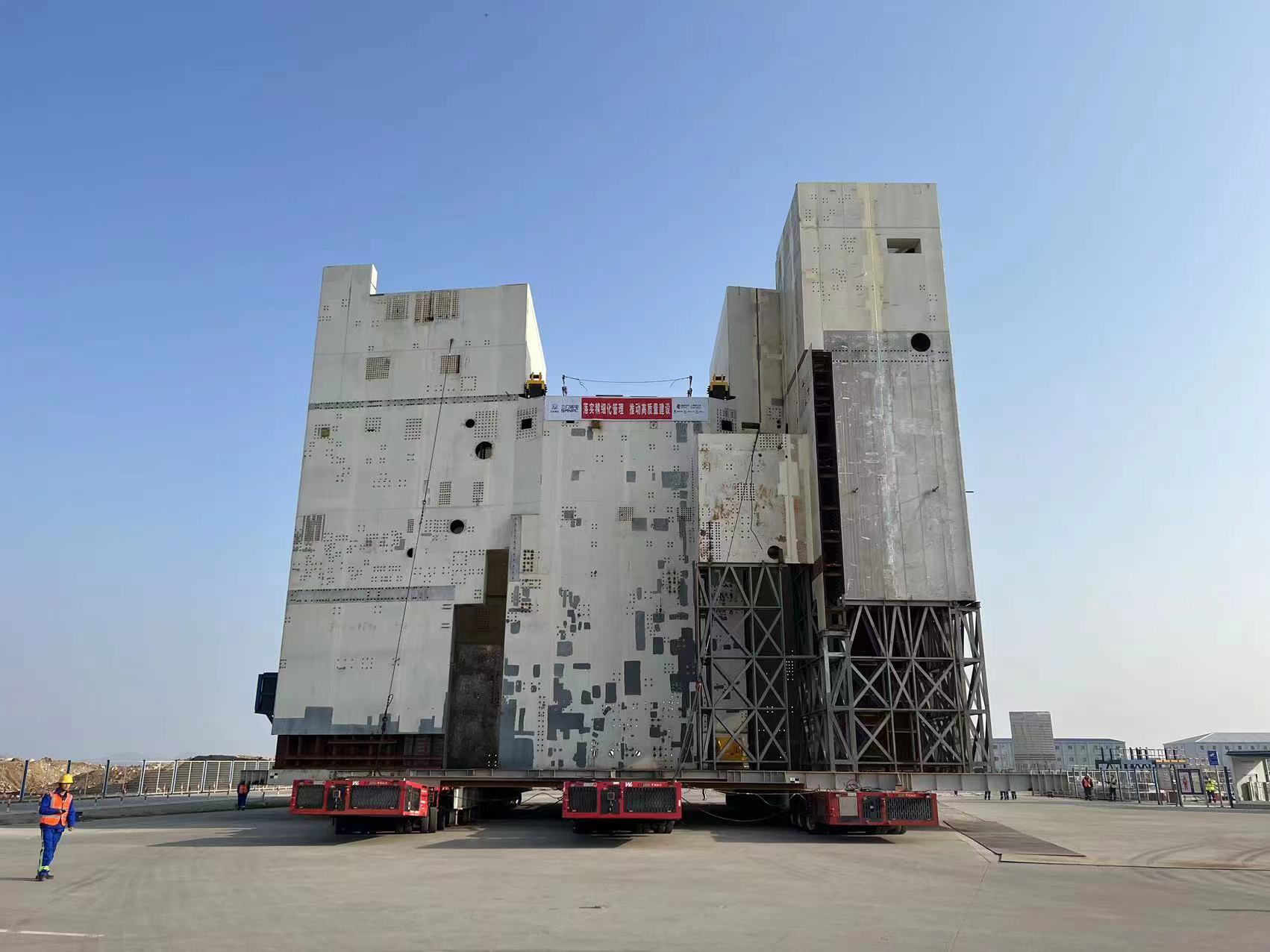 SPMT自行式模塊運輸車,又名自行式液壓平板車,此車輛是萬山公司生產,為江蘇鹽城港控股集團有限公司所有。