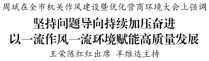 周斌指出,黨的十八大以來(lái),以習(xí)近平同志為核心的黨中央高度重視干部作風(fēng)和營(yíng)商環(huán)境建設(shè),反復(fù)強(qiáng)調(diào)作風(fēng)建設(shè)永遠(yuǎn)在路上,只有進(jìn)行時(shí)沒(méi)有完成時(shí);深刻指出“好的營(yíng)商環(huán)境就像陽(yáng)光、水和空氣,須臾不能缺少”。全市上下要切實(shí)增強(qiáng)責(zé)任感、緊迫感,深刻認(rèn)識(shí)轉(zhuǎn)作風(fēng)、優(yōu)環(huán)境是扛起新使命的關(guān)鍵之舉,是競(jìng)逐新賽道的必由之路,是展現(xiàn)新作為的應(yīng)有之義,必須把機(jī)關(guān)作風(fēng)建設(shè)和優(yōu)化營(yíng)商環(huán)境擺在更加突出位置,對(duì)照“軍令狀”,落實(shí)“施工圖”,畫好“工筆畫”,全力攻堅(jiān)突破、爭(zhēng)先進(jìn)位,嚴(yán)格督查考核,以永遠(yuǎn)在路上的恒心,一步一個(gè)腳印矢志鍛造一流作風(fēng)、營(yíng)造一流環(huán)境、創(chuàng)造一流業(yè)績(jī)。