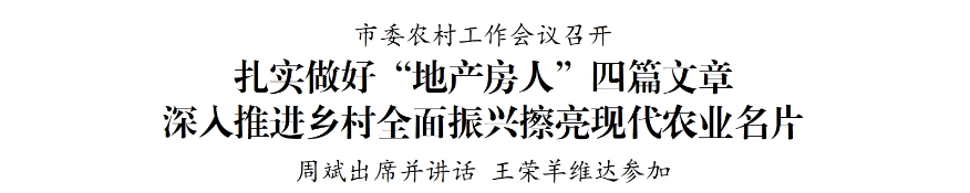周斌指出,去年全市上下堅持把“三農”工作擺在全局工作的重中之重,穩(wěn)產保供彰顯擔當,產業(yè)發(fā)展加快起勢,強村富民闖出新路,農業(yè)農村現(xiàn)代化邁出堅實步伐。當前,高水平建設農業(yè)強市已經從起筆謀劃進入到加快實施的階段,“三農”工作肩負的使命更加重大,必須切實增強做好“三農”工作責任感使命感,準確把握“三農”工作定位、現(xiàn)階段主要任務、鄉(xiāng)村振興實現(xiàn)路徑,堅定信心、乘勢而上,不斷提升鄉(xiāng)村產業(yè)發(fā)展、鄉(xiāng)村建設和鄉(xiāng)村治理水平,加快建設宜居宜業(yè)和美鄉(xiāng)村。