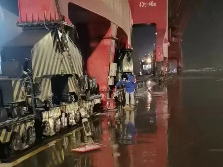 細排精濾查隱患,守護安全顯擔當。為保障碼頭生產設備安全,風電公司立即組成設備保障組進行設備防凍防寒突擊檢查,通過對碼頭門機及料斗夾輪器、制動器、防風拉鎖、拉桿等進行專項檢查,確保設備無損且處于“備戰”狀態。