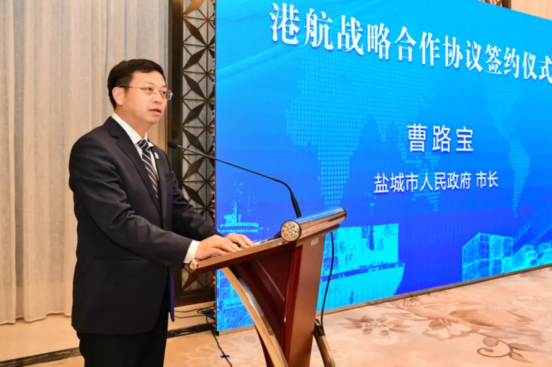 10月28日下午,鹽城市人民政府和安徽省港航集團、江蘇鹽城港控股集團和安徽省港口運營集團在蚌埠市分別簽訂戰略合作協議。蚌埠市委書記汪瑩純、鹽城市人民政府市長曹路寶、安徽省港航集團董事長丁慶領等出席并致辭。