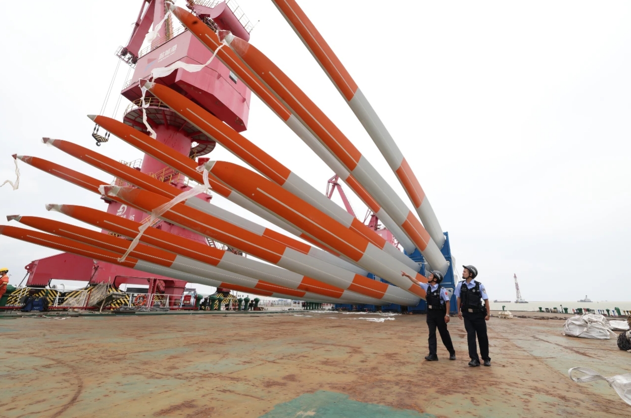 風(fēng)能是一種清潔可再生能源,風(fēng)力發(fā)電近年來越發(fā)受到世界各國重視。鹽城港作為華東地區(qū)大型國產(chǎn)風(fēng)電葉片的主要出口港之一,風(fēng)電葉片主要出口到共建“一帶一路”國家。此次共起運(yùn)20套60件風(fēng)電葉片及其附屬配件,其中葉片長75.8米,貨物總體積超6萬余立方米,總價(jià)值約6000萬元,是中國專門為國際市場(chǎng)(印度)需求研發(fā)的陸上風(fēng)電設(shè)備。據(jù)鹽城出入境邊防檢查站統(tǒng)計(jì),2024年鹽城港射陽港區(qū)累計(jì)完成風(fēng)電裝備裝卸量936.85萬噸,同比增長23.67%,外貿(mào)風(fēng)電完成19.01萬噸,同比增長100%。