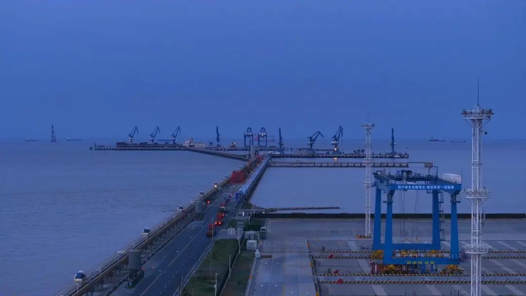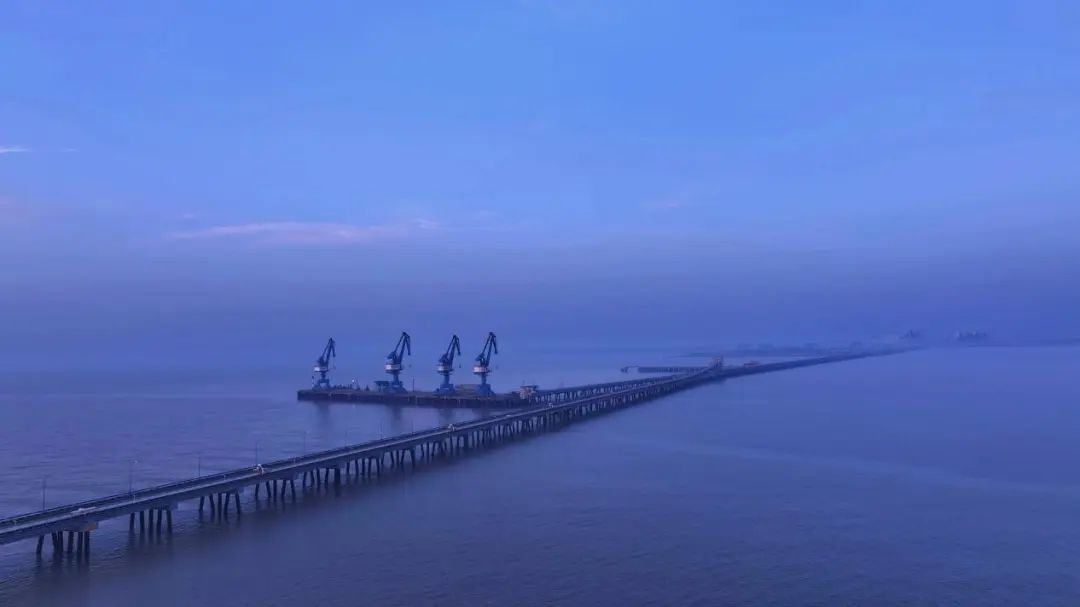 藍調時刻的美,在于它讓工業與浪漫共舞。當夕陽沉入黃海的懷抱,港區的燈塔率先點亮,堆場的集裝箱矩陣褪去白晝的灰藍,漸次染上紫粉的余暉,仿佛莫奈筆下的《干草堆》有了現代工業版;而泊位旁停靠的巨輪,甲板燈火如珠鏈,與天際殘留的鈷藍云霞交織,構成一幅“海上生明月,天涯共此時”的恢宏長卷。
