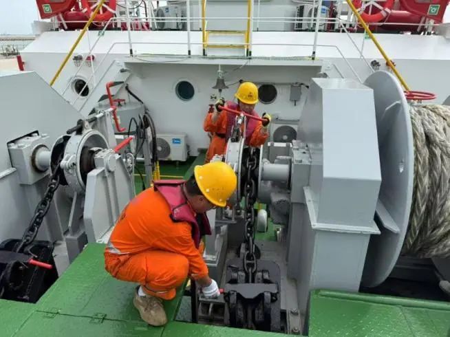 作業過程中,拖輪駕駛員憑借“毫米級”操控技藝精準駕馭:運用DP動力定位系統穩固船體,協同船長實時調節拖纜力度,保障巨輪平穩靠泊。若遭遇強橫流或主機異常時,迅即切換至“雙拖輪應急模式”,依托備用動力或協作拖輪抵消外力;若遇纜繩斷裂,船員快速啟動防爆撇纜器重新固定,全程保持VHF頻道實時聯動。整個團隊以“眼觀六路、耳聽八方”的敏銳姿態,將規范操作與靈活處置無縫結合,預先化解風險,牢牢掌控作業主動權。